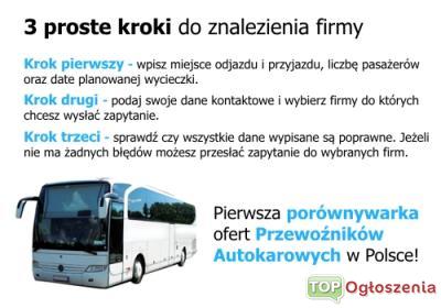 PORTAL internetowy wynajem autokarów to nowoczesny Ogólnopolski Portal internetowy skupiające w jednym miejscu firmy przewozowe oferujące wynajem autobusów i autokarów. Serwis umożliwia za pośrednictwem kilku kliknięć dotarcie do wszystkich zarejestrowanych firm oferujących wynajem autobusów i autobusów.